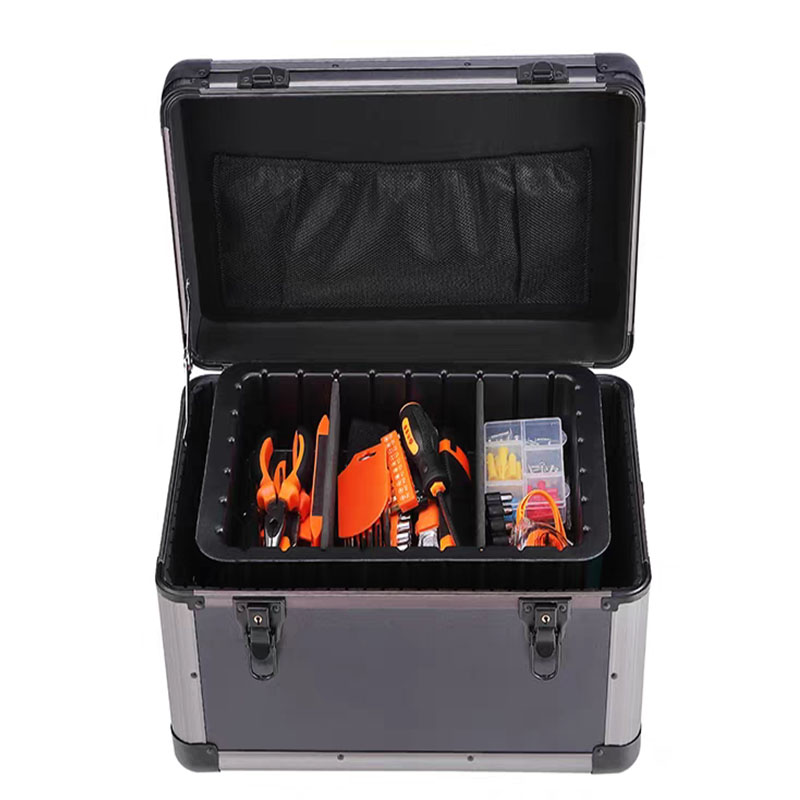 This custom aluminum tool box is built with gray aluminum profiles and black aluminum panels, featuring a 5.0mm thick