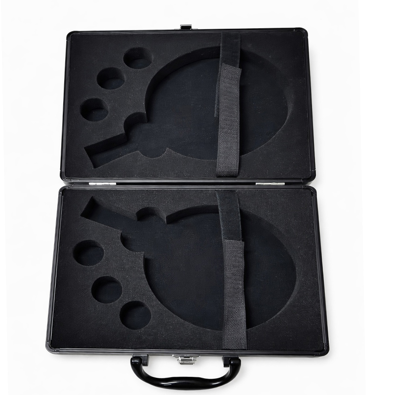 This double-sided OEM table tennis rackets case is a professional custom pingpong paddle case designed for B2B sports brands, clubs, and private label programs. Both the top and bottom compartments can hold one racket each, allowing two table tennis rackets to be stored securely, while six ping pong balls fit precisely into custom-cut EVA foam inserts. Built-in Velcro straps keep the paddles fixed and protected during transport. The rigid aluminium sports equipment case is equipped with a secure lock, a reinforced metal handle, and four electroplated corner protectors, delivering a premium look with long-term durability. This table tennis aluminum case is ideal for OEM customization, branded packaging, and bulk wholesale orders.